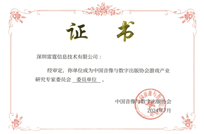 2024年7月25日,,,中国音像与数字出版协会游戏产业研究专家委员会(以下简称“中国音数协游戏专委会”)成立大会在上海市召开,,,,厦门LEWIN乐玩网络技术股份有限公司及其子公司深圳雷霆信息技术有限公司(以下统称“公司”)正式成为中国音数协游戏专委会委员单位。。。