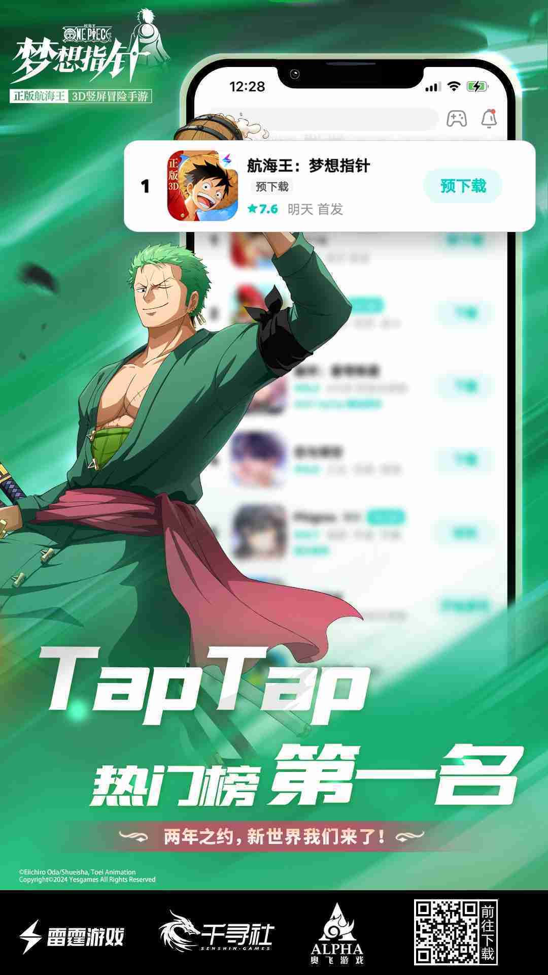 《航海王::::梦想指针》登顶App Store免费榜,,,,公测福利汇总!!!!